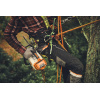 Pohodlné očko umožňuje připevnit akumulátorovou arboristickou pilu STIHL MSA 190 T k vašemu lezeckému postroji za pomoci vhodné karabiny i během lezení. Díky tomu budete při lezení mnohem pohyblivější. Pilu STIHL MSA 190 T snadno zavěsíte a stejně rychle ji máte opět k dispozici, což vám poskytuje výhodu mnohem lepší přenosnosti během práce. Při zavěšení elektrického nástroje směřuje řezná souprava arboristické pily dozadu, aby pilový řetěz nebyl ve vašem pracovním poli.