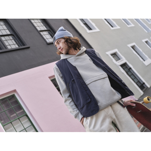 Pohodlná, trochu větší mikina, která sedí každému. Do prostorné kapsy na zip bezpečně umístíte telefon i klíče a nic se neztratí. Na levé části hrudi je v černé barvě vytištěna malá značka STIHL a text „STIHL LEGENDARY PERFORMANCE“.